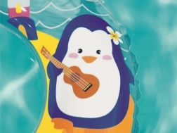 - Živé barvy a hravé motivy – pingvini, mořské panny a tropické prvky lákají ke hře.