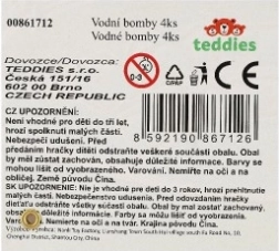 Sada obsahuje 4 vodní bomby vhodné pro děti od 3 let. Perfektní volba pro zábavu na zahradě nebo u bazénu.