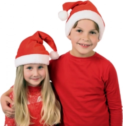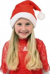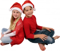 Roztomilá dětská vánoční čepice v klasickém stylu Santa s červeným plyšem, bílým lemem a měkkou bambulkou. Skvělý doplněk pro vánoční oslavy, školní vystoupení i rodinné focení. Pohodlný textilní materiál sedí příjemně na hlavě a navodí sváteční atmosféru během celých Vánoc.