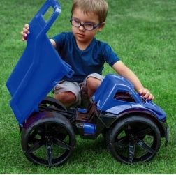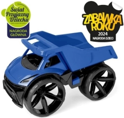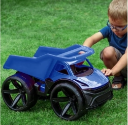 Vyklápěcí nákladní auto MAXIMUS zaujme futuristickým designem, výraznou modrou barvou a detailním zpracováním. Široký nárazník, šikmo umístěná světla a kontrastní povrchy dodávají hračce moderní vzhled, který podněcuje dětskou fantazii.