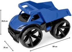 Délka 59 cm nabízí spoustu prostoru pro náklad. Díky odolnému, ale lehkému plastu se s náklaďákem snadno manipuluje i menším dětem.