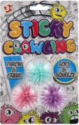 Zábavná sada tří lepivých míčků, které po hození na hladký povrch jako sklo či dlaždičky pomalu „lezou“ dolů. Míčky jsou ze silikonového materiálu, jsou měkké, mačkací a díky lepivému povrchu zaručí spoustu smyslové zábavy. Ideální pro fidget a antistresové hraní, jednoduché na použití a vhodné pro děti od 3 let.
