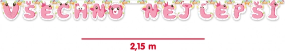 Ozdobte svou oslavu stylově – růžová papírová girlanda Všechno nejlepší snadno rozzáří každý prostor. Stačí ji roztáhnout a pověsit a během chvilky vytvoříte jedinečnou párty výzdobu. Délka cca 215 cm je ideální nad sladký bar, fotokoutek i vstupní prostor.