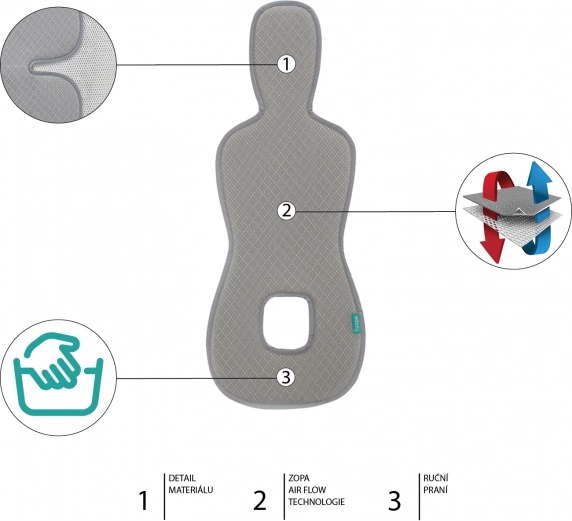 Unikátní technologie Zopa Air Flow a látka s 3D hexagon strukturou poskytují proudění vzduchu mezi autosedačkou a dítětem, čímž zajišťují maximální komfort.