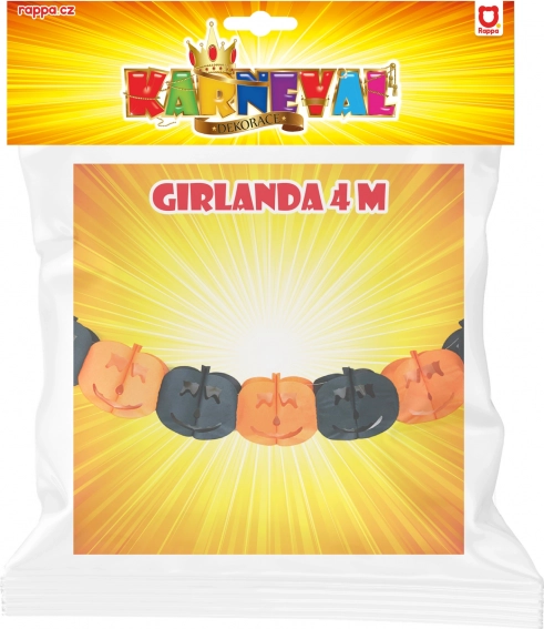 Dodejte své halloweenské výzdobě šmrnc s černo‑oranžovou girlandou s motivem dýní. Díky papírovému materiálu je lehká, snadno se zavěšuje a okamžitě vytvoří veselou atmosféru na oslavách i tematických večírcích.