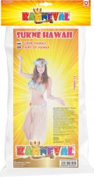 Tato stylová havajská sukně je perfektním základem pro exotický kostým. Je vyrobena z tenkých plastových pásků v přírodním odstínu a v pase zdobená pestrými květy, které vytvářejí výrazný tropický efekt. Délka 72 cm zajišťuje krásný pohyb při tanci a pohodlné nošení během celé akce.