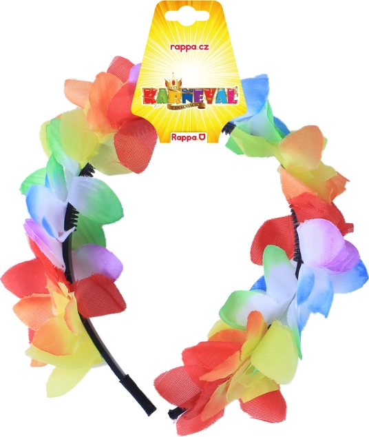 Stylová čelenka ve stylu Havaj je nepřehlédnutelný doplněk ke kostýmu. Čelenku zdobí pestrobarevné květy, které dodají vašemu outfitu exotický šmrnc a zajistí, že budete na plese či karnevalu hvězdou večera.