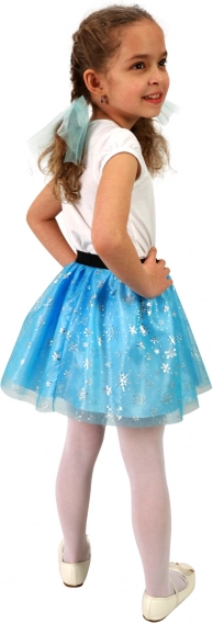Tato půvabná dětská tutu sukně promění každou holčičku ve skutečnou zimní princeznu. Lehký a nadýchaný tyl v modrém odstínu doplňují třpytivé vločky, které krásně odrážejí světlo. Díky pružnému pasu se sukně snadno obléká a pohodlně nosí po celý den.