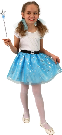 Roztomilá dětská tutu sukně pro malé zimní princezny zaujme svou nadýchanou modrou siluetou, třpytivými sněhovými vločkami a pohodlnou gumičkou v pase. Ideální pro kostýmové hry, oslavy i focení.
