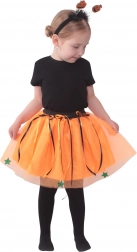 Dopřejte malé parádnici výjimečný vzhled na každou halloweenskou oslavu. Tento kostým v typických oranžovo‑černých barvách zaujme nadýchanou tutu sukýnkou a perfektně sladěnou čelenkou s roztomilými dýňkami. Díky pružnému pasu se sukně snadno obléká a pohodlně nosí.