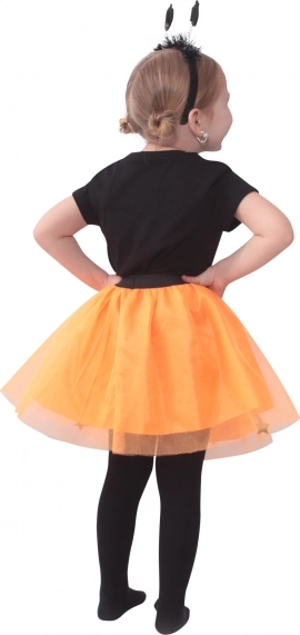 Nadýchaná oranžovo‑černá sukně s dekorativními prvky dodá kostýmu výraz a hravost, přitom zůstává lehká a pohodlná.