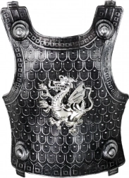 Působivý design s dračími symboly na zbroji a štítu zaujme každého malého rytíře.