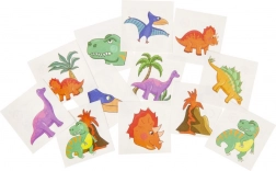 Zábavná sada dočasných tetování s motivem dinosaurů obsahuje 12 různých designů, každý na samostatné kartičce a s grafickým návodem pro rychlou a snadnou aplikaci. Ideální jako drobná odměna, dárek či doplněk na dětskou party.