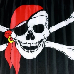 Vytvořte tu správnou pirátskou atmosféru s klasickou černou vlajkou s bílým motivem lebky. Pirátská vlajka je lehká, dobře viditelná a díky dřevěné tyčce se pohodlně drží i menším dětem. Skvěle se hodí jako doplněk ke kostýmu, dekorace místnosti nebo rekvizita na tematické focení.