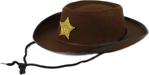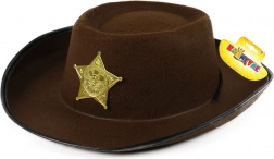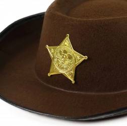 Stylový hnědý kovbojský klobouk pro děti dodá každé hře na divoký západ ten správný šmrnc. Díky šerifské hvězdě si malí kovbojové získají respekt ve městě a užijí si spoustu kreativní zábavy. Vhodné pro děti od 3 let.