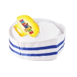 Bílá čepice s modrými pruhy a kotvou vpředu dodá dětskému kostýmu skutečný mořský šmrnc.