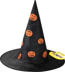 Dopřejte dětem nezapomenutelný halloweenský zážitek s tímto černým čarodějnickým kloboukem zdobeným výraznými oranžovými dýněmi. Lehký textilní materiál zajistí pohodlí po celou dobu nošení a díky klasickému špičatému tvaru vytvoří okamžitý kouzelný efekt.