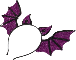 Tato fialová čelenka s netopýřími křídly v třpytivém designu je skvělá volba pro Halloween, čarodějnické oslavy i tematické focení. Pohodlná, lehká a snadno kombinovatelná s jakýmkoliv kostýmem, dodá vašemu outfitu okamžitou halloweenskou atmosféru.
