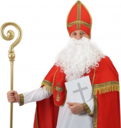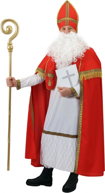 - Mikulášská čepice, bílé roucho, červený plášť s límečkem, šerpa s křížem