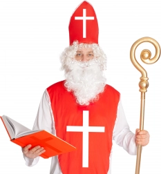Kombinace bílého roucha a červené náprsenky s křížem vytváří tradiční a reprezentativní vzhled pro každou mikulášskou nadílku.