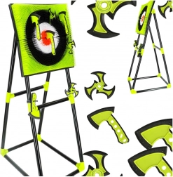 Objevte akční terčovou zábavu inspirovanou světem ninja – se silikonovými sekerami a šurikeny si děti bezpečně procvičí zaměřování i soustředění. Pevný volně stojící rám se stojanem umožní rychlé sestavení a pohodlné odkládání příslušenství.