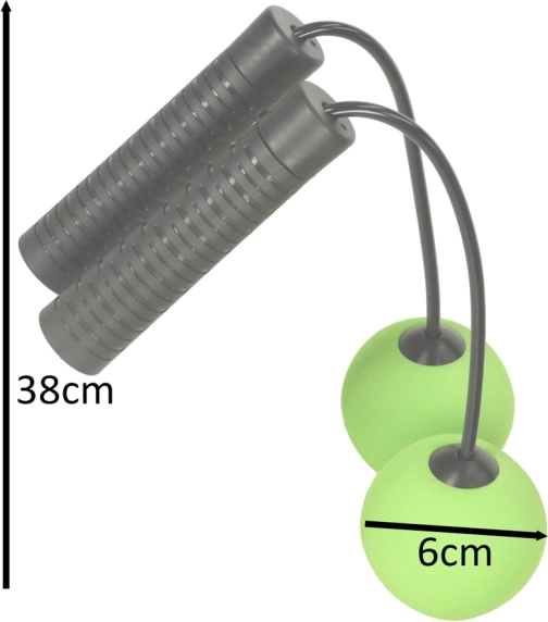 Trénujte bez dlouhého lana – kuličky na krátkých lankách simulují rotaci a minimalizují riziko zakopnutí. Skvělé pro byt, kancelář i posilovnu.