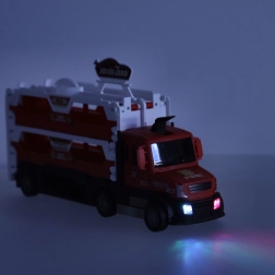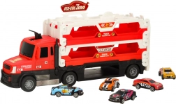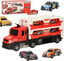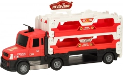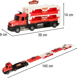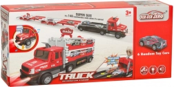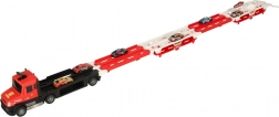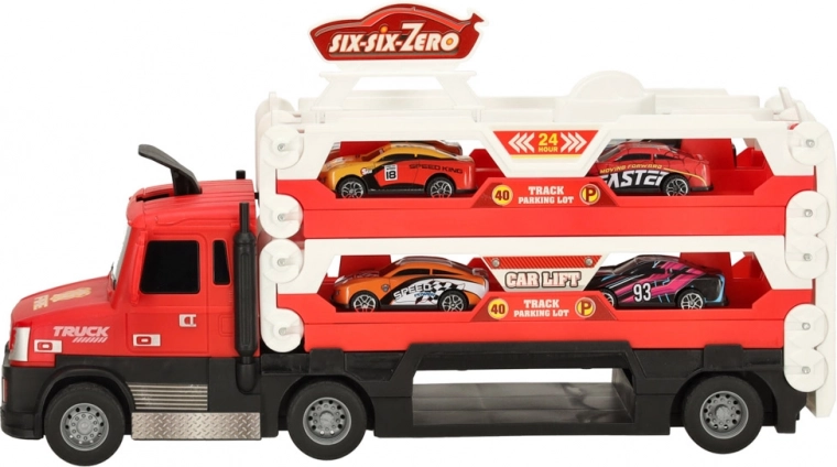 Obří červený kamion slouží jako přepravník aut a zároveň jako hrací set se skrytým závodním okruhem. Po rozložení vznikne dlouhá dráha, na které se 6 přiložených autíček může předhánět. Integrovaná katapultovací rampa dodá startu pořádnou rychlost, zatímco světla a zvuky umocní atmosféru skutečných závodů.