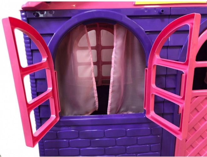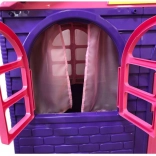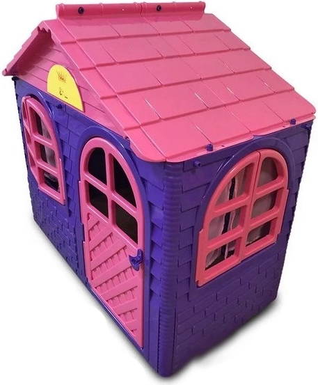 Roztomilý dětský domeček DOLONI v kombinaci fialové a růžové barvy přinese hodiny zábavy na zahradě i v pokojíčku. Má otevírací dveře a okna se závěsy, bezpečné zaoblené hrany a je vyroben z kvalitního, odolného plastu pro dlouhodobé používání. Ideální pro kreativní a rolové hry dětí od 18 měsíců.