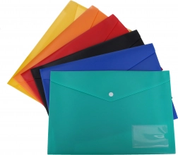 Praktická složka na dokumenty s voskovou fólií, ideální pro archivaci a třídění dokumentů. Snadno omyvatelný materiál s zapínáním na druk.