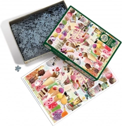 Ponořte se do sladkého světa motivu Mražené dobroty a užijte si kvalitní zpracování puzzle COBBLE HILL. Speciální, nepravidelná raznice nenásleduje klasickou mřížku, takže rohy a hrany dílků nejsou vždy v jedné ose. To zvyšuje náročnost skládání i výsledný zážitek.