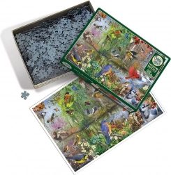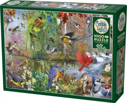 Objevte přírodní krásu na ilustraci plné barevných ptáků u jezírka, kde se prolínají jaro, léto, podzim i zima. Puzzle z kolekce COBBLE HILL využívá nepravidelnou raznici, takže rohy a hrany dílků nejsou v jedné ose a každý dílek má svůj charakter. Výsledkem je poutavější skládání a delší herní zážitek.