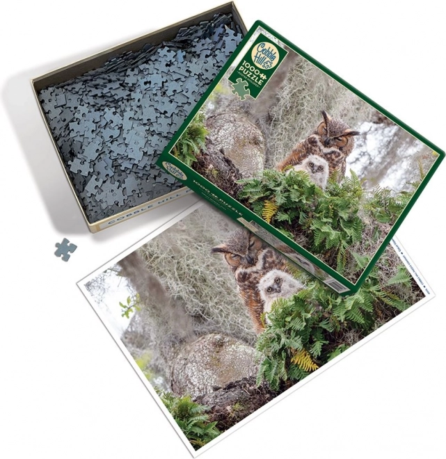 Ponořte se do detailně zpracované scény, kde majestátní výr virginský hlídá své mládě v zeleném porostu. Značka COBBLE HILL je proslulá mimořádnou kvalitou tisku a pestrými motivy z přírody, které si vychutnáte při každém kroku skládání. Díky originální raznici bez klasické mřížky má každý dílek jedinečný tvar a puzzle tak nabízí zábavnější a náročnější zážitek.
