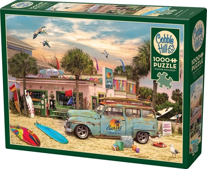 Zažijte jedinečnou skládací výzvu s puzzle Surfařská bouda od Cobble Hill. Ta přináší složitější provedení díky nesymetrickým tvarům dílků, které nejsou v jedné ose. Tato vyšší obtížnost zaručí, že každé složení bude nezapomenutelným zážitkem.