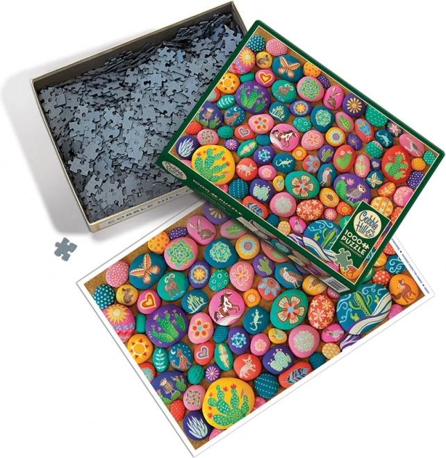 Užijte si skládání puzzle s krásně malovanými kameny Jihozápadu od značky COBBLE HILL. Každý dílek je unikátního tvaru, což zvyšuje výzvu a uspokojení při skládání.