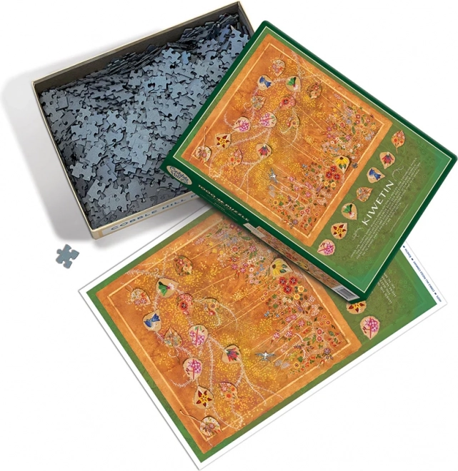 Puzzle Kiwetin od COBBLE HILL s 1000 dílky nabízí vyšší úroveň obtížnosti díky unikátním tvarům dílků, které neodpovídají standardní mřížce.
