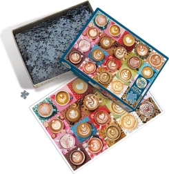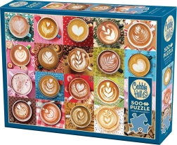 Objevte kouzlo kavárenské atmosféry u vás doma. Puzzle COBBLE HILL Miluji tě, latté přináší barevnou mozaiku šálků s jemnou latte art pěnou. Díky unikátní výsekové raznici nejsou hrany a rohy v jedné ose, což zvyšuje zábavnost i náročnost skladby a zabraňuje zaměňování dílků.