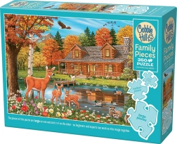 Rodinné puzzle COBBLE HILL je navrženo tak, aby si skládání užili všichni – od nejmenších po dospělé. Motiv idylického rybníka u chalupy přináší klidnou atmosféru a krásné detaily, které vás budou bavit objevovat. Rozdělení puzzle do zón s rozdílnou velikostí dílků umožňuje pohodlné skládání vedle sebe.