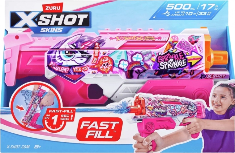Užijte si horké letní dny s vodní pistolí ZURU X-Shot Skins Fast-Fill v růžovém designu. Díky technologii rychlého plnění doplníte vodu za pár vteřin, dostřelí až 10 metrů a její ergonomický tvar je skvělý pro dětské ruce. Lehká, odolná a připravená na nekonečné vodní bitvy.