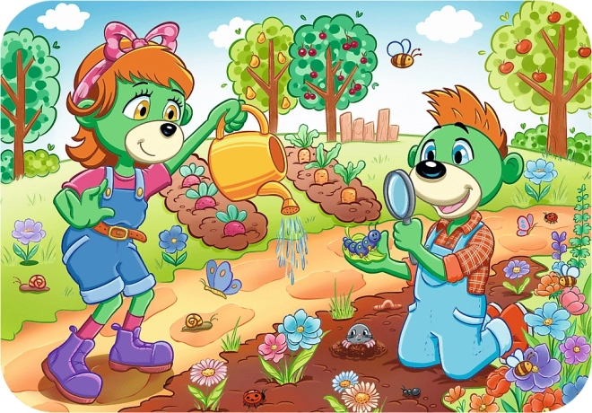 Velké pravidelné dílky se zaoblenými hranami se snadno drží a bezpečně skládají – ideální pro dětské ruce a první puzzlové úspěchy.