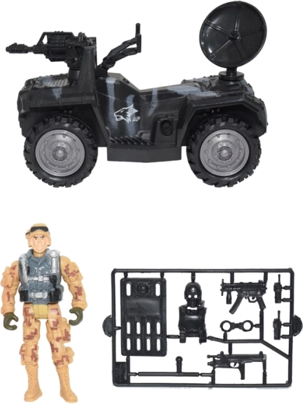 Tato vojenská sada je ideální pro všechny malé nadšence do armádních akcí. Nabízí nejen kvalitní vozidlo, ale také postavičku vojáka a různé příslušenství, které dohromady tvoří dokonalou sadu pro imaginativní hry. S použitím světelných a zvukových efektů, které přidávají na realismu, se děti mohou ponořit do nekonečných hodin hravých scénářů.