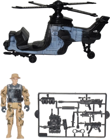 Součástí sady je figurka vojáka v maskáčovém oblečení a odnímatelné příslušenství, jako jsou zbraně.
