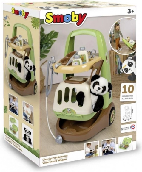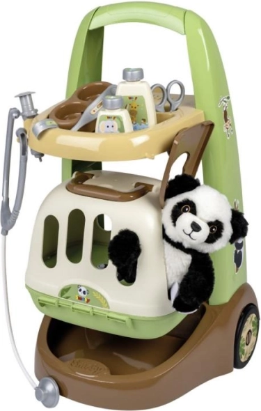 Smoby veterinární vozík s pandou přináší dětem od 3 let autentickou hru na veterináře. Díky chytrému řešení 2v1 slouží praktický box jako přepravka pro zvířátka i jako samostatný pojízdný lékařský kufřík. Vozík má kolečka s lehkým chodem, takže se snadno řídí i menším dětem, a přitom nabízí dost prostoru pro uložení veškerého vybavení.