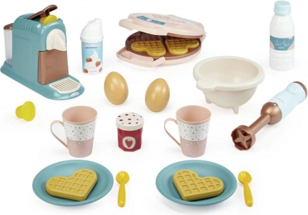 Vytvořte si dokonalou dětskou snídani s multifunkčním setem, který spojuje tři oblíbené kuchyňské spotřebiče v jednom: kávovar, vaflovač a tyčový mixér. Díky bohaté výbavě děti snadno napodobí přípravu nápojů a dobrot, rozvíjejí jemnou motoriku a učí se spolupráci.