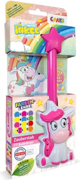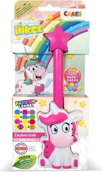 Kouzelná hůlka INKEE v roztomilém designu jednorožce přináší dětem do vany spoustu radosti a fantazie. Jednoduše vložte šumivou kapku do hůlky, ponořte do vody a sledujte, jak se uvolňuje barevná vůně jahod a zanechává magickou stopu.
