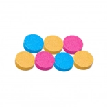 Balení obsahuje celkem 7 šumivých kapek x 3 g v barvách purpurová, žlutá a modrá. Díky kombinaci tří základních barev děti snadno vytvoří až 7 odstínů – například oranžovou, zelenou, červenou a fialovou. Hračka podporuje kreativitu, učení barevnému míchání a zpříjemní každý koupací rituál.