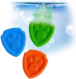 Kid-friendly složení je navrženo pro každodenní radost z koupání. Balení obsahuje 3 mini bomby po 15 g ve tvaru odznaku s tlapkou, které lákají k objevování a podporují pozitivní rituál večerní hygieny.