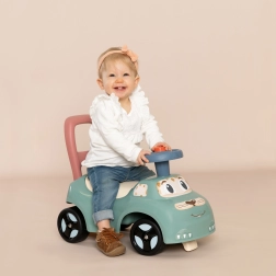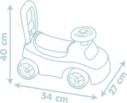 Volant s klaksonem přidává porci zábavy, zatímco sedátko se schovkou pojme malé poklady. Přední a zadní proti-převrácené výstupky zvyšují bezpečnost při jízdě i zastavení. Ideální pomůcka pro učení chůze, rovnováhy a posílení nožiček.