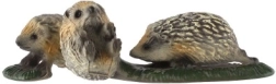 Tato drobná dekorace znázorňuje maminku ježka s mláďaty na zeleném podstavci, který připomíná trávník. Působí přirozeně díky pečlivě zpracovaným detailům bodlin, čumáčků a tlapek. Je ideální na poličku, parapet, pracovní stůl nebo do dětského koutku.