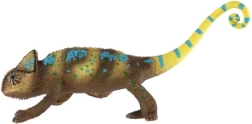 Objevte fascinující svět plazů s detailně zpracovaným modelem chameleona jemenského. Tento plastový chameleon vyniká realistickou texturou kůže, výraznými očima a typickým spirálovitým ocasem. Autentické zbarvení s hnědými, modrými a žlutými akcenty dodává figurce věrnost, která zaujme děti i dospělé.