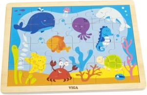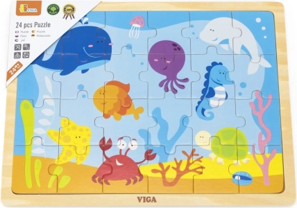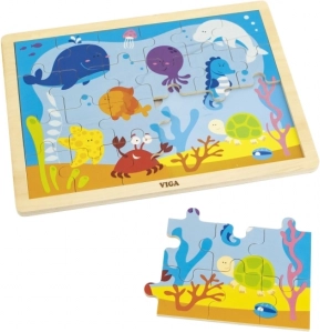 Veselé dřevěné puzzle s motivem podmořského světa představuje ideální zábavu pro děti. Skládání z 24 dílků pomáhá rozvíjet kognitivní a motorické dovednosti.